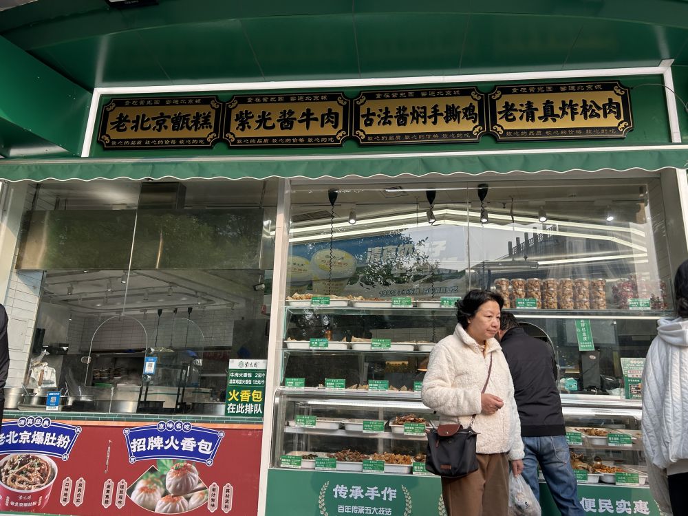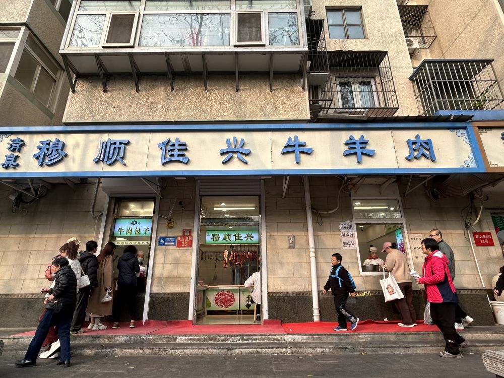 牛街上有不少卖新鲜牛羊肉的店铺,每家旁边都有一个窗口卖现场剁肉的牛肉包子: