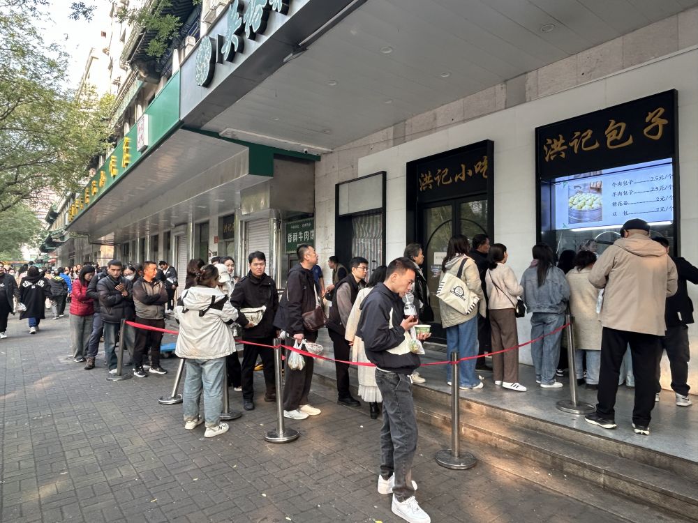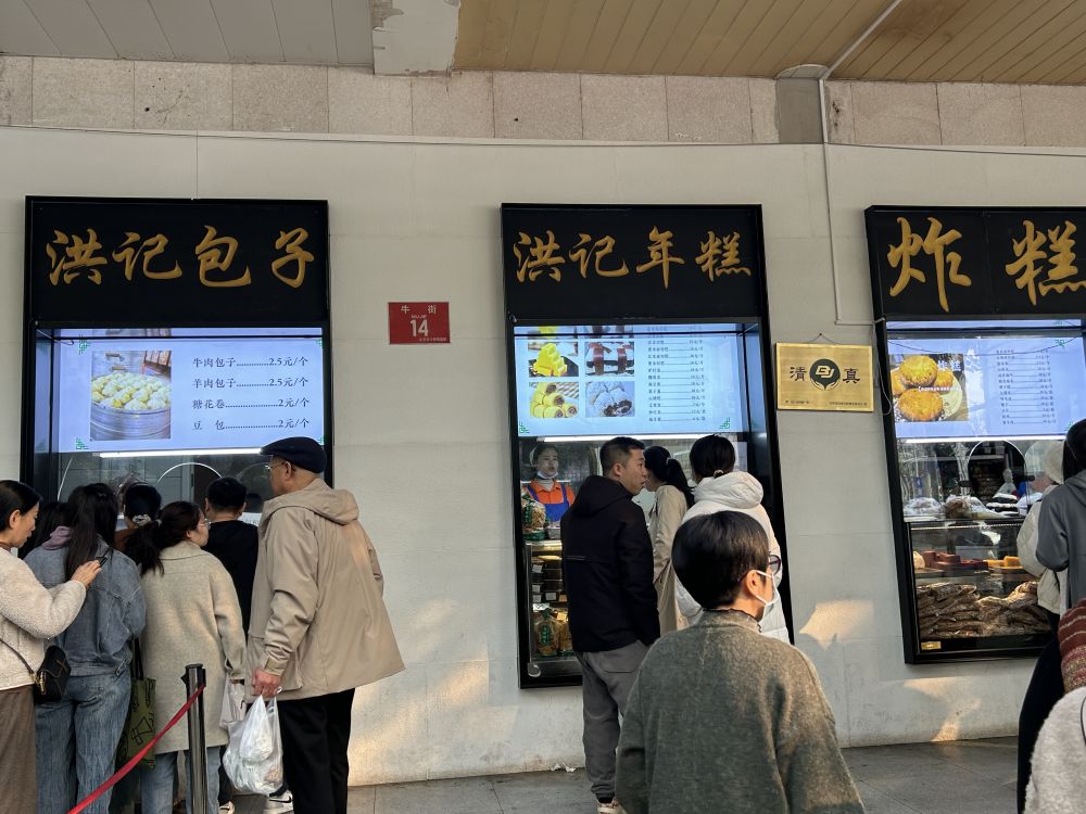 正好遇上一笼牛肉包子蒸好了,不太排队就能买到,味道不错:
