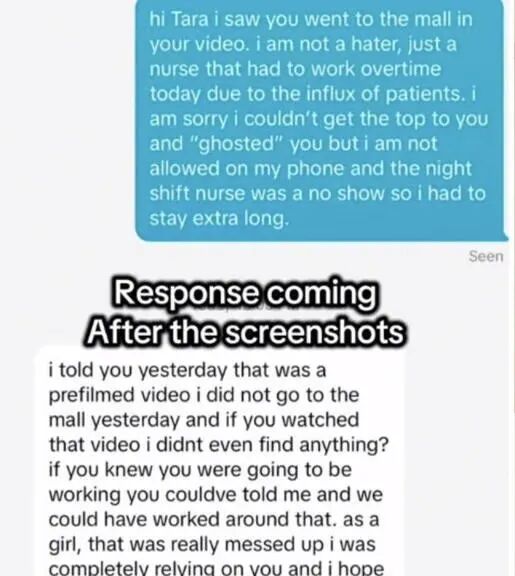Tara Lynn 又连发多条后续视频,在最新一条中,她甚至开始质疑那名护士的身份真实性:“我现在才说这件事,是因为我看到已经有些人开始怀疑了,但我自己想了好几天,她不可能真的是护士。”