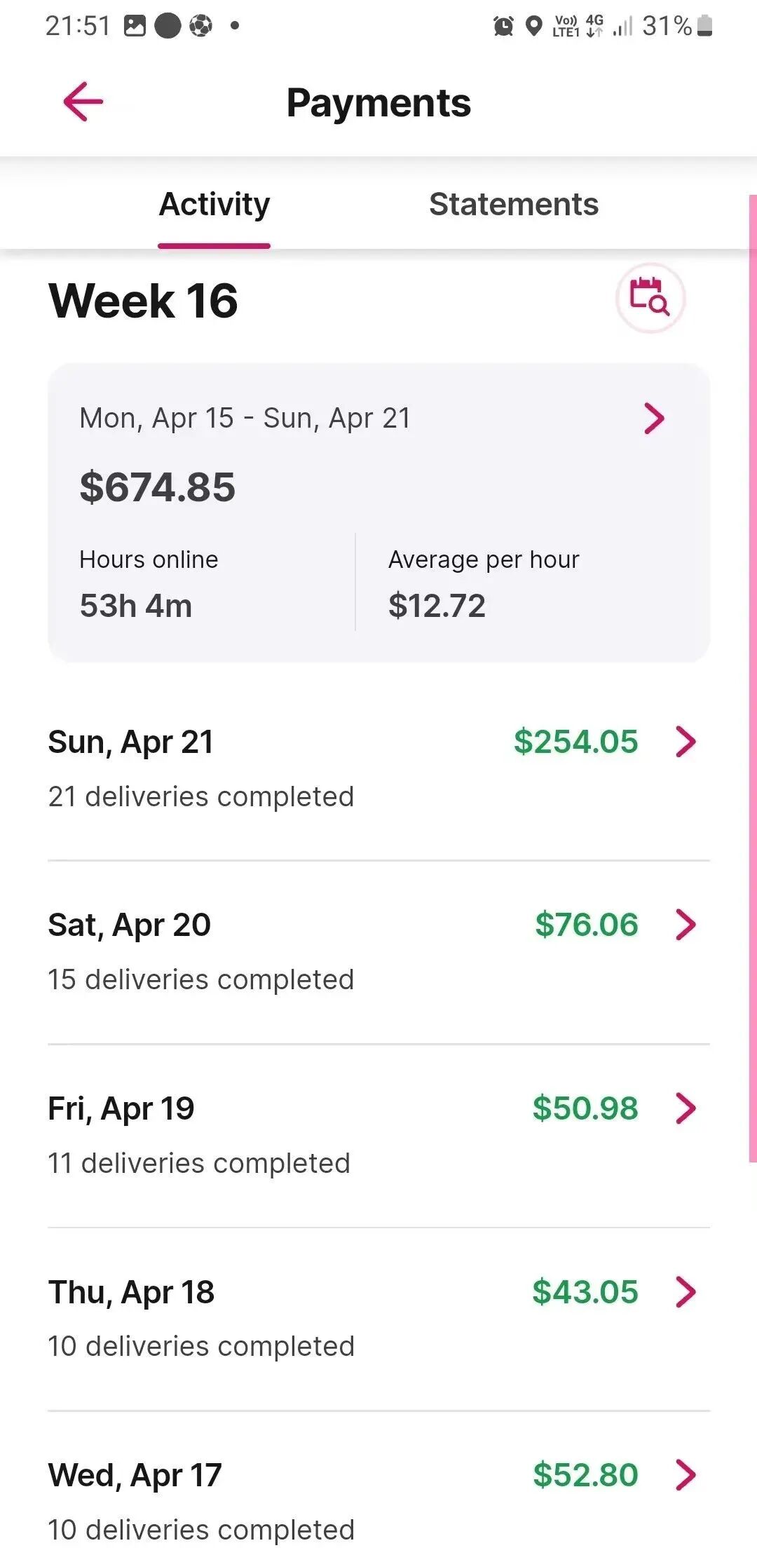 根据他在社交平台上的自述,2024年成为了新加坡本地的全职外卖骑手,每天要工作11到12个小时,一周几乎没有休息日。平均下来每周大约能赚700新加坡币,状态最好的时候,一天最高进账254新加坡币,折合成人民币差不多1300多元。