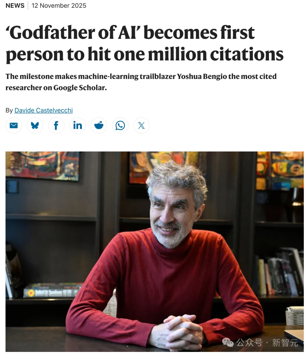 两个月前,Nature曾发文:Bengio成为世界首位被引数超100万的研究者。