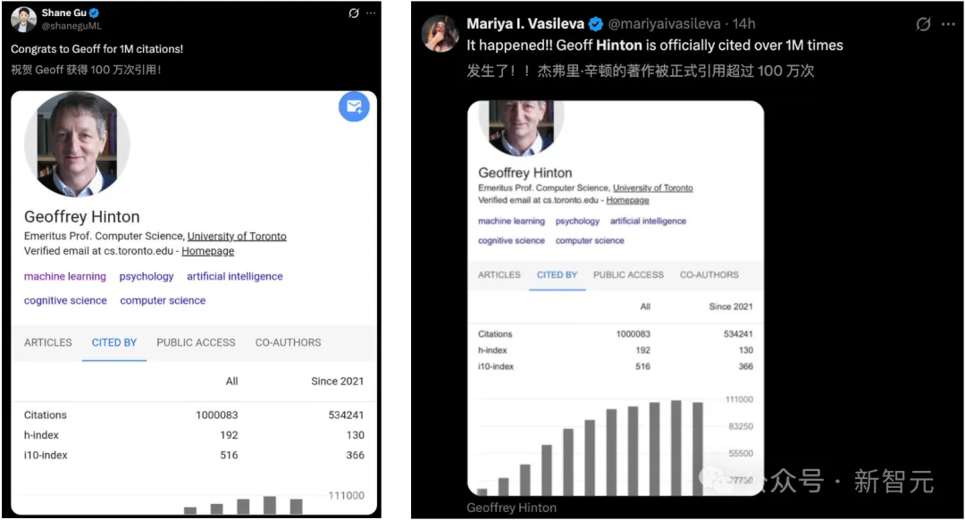 刚刚,AI教父、图灵奖巨头Geoffrey Hinton论文被引数正式破100万!