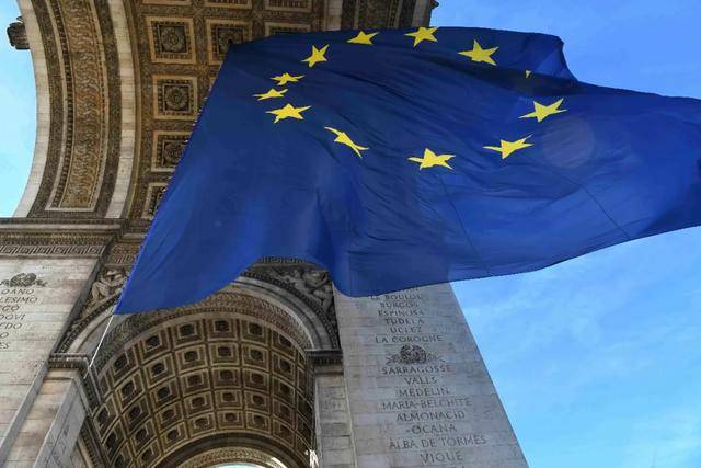 巴黎凯旋门悬挂着一面巨大的欧盟旗帜。(资料图)中新社记者 李洋 摄