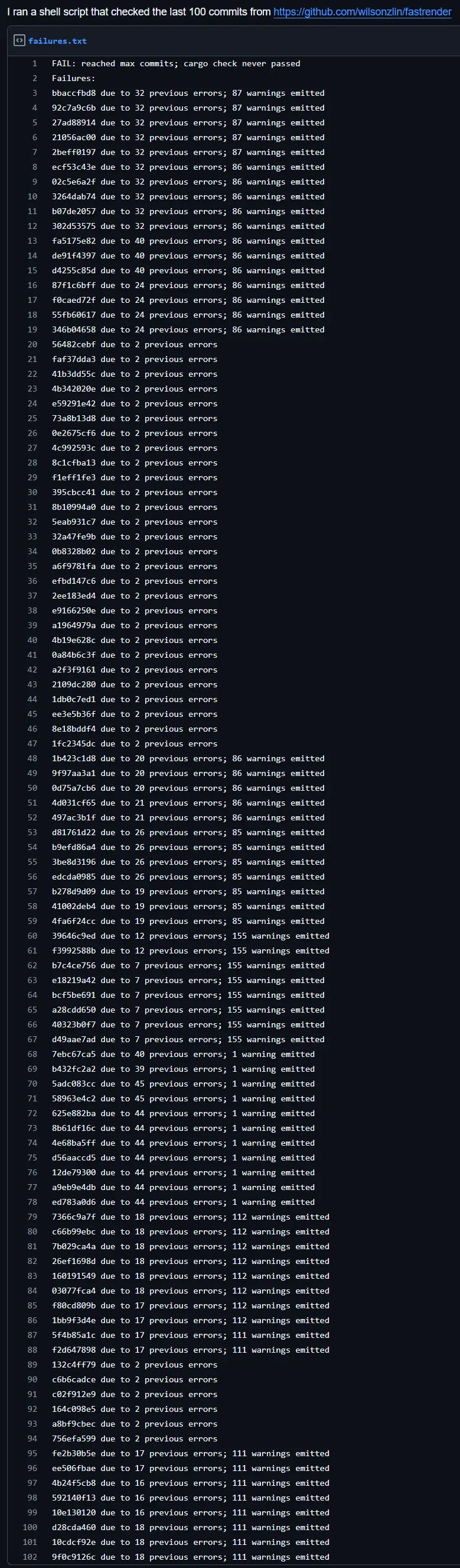现在我们根本无法确定,Cursor的研究者在这个代码库上释放的「智能体」实际上干了什么,但它们似乎从未运行过cargo build,更不用说cargo check了。