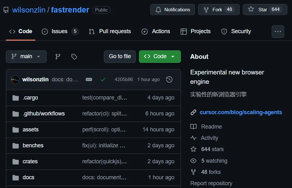 而且,除了丢出一个代码仓库链接,Cursor没有提供任何可复现的演示,也没有给出任何已知可用的版本标签(tag/release/commit)来验证那些光鲜亮丽的截图。