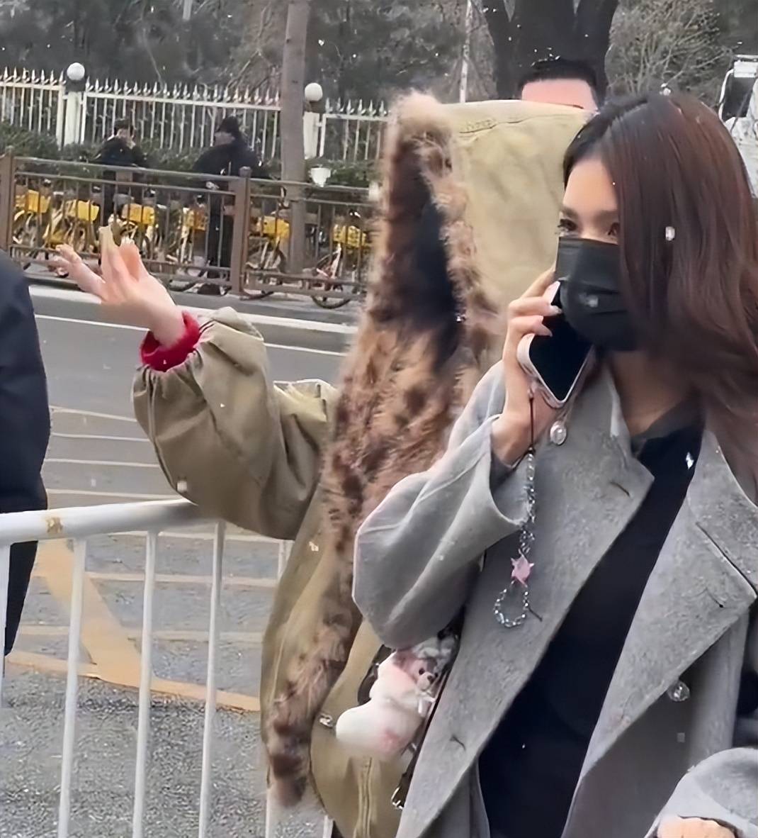 31岁女星白鹿早上10:00上班,在场外等待了一会儿,正是雪大的时候,她也没有不耐烦,一边等一边玩雪,松弛感拉满,进场中途被簇拥着走,就算伸手艰难也要打招呼。