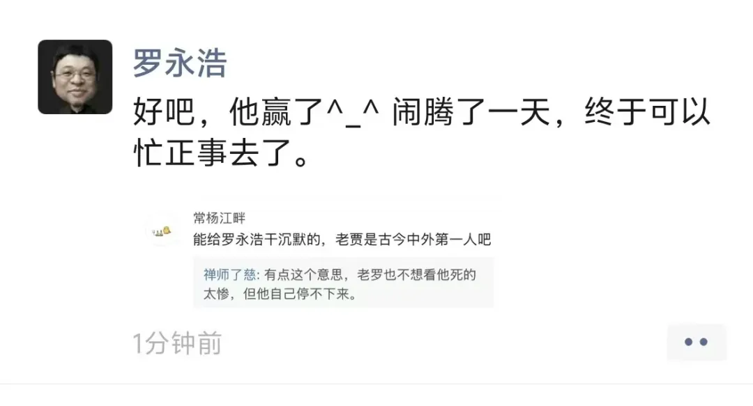 西贝贾国龙与罗永浩线上之争持续受到关注。 1月16日21时50分许,新黄河记者从知情人士处确认,@罗永浩的十字路口 以及@西贝贾国龙 两个账号均被禁言。 随后,新浪微博CEO王高飞通过个人微博@来去之间发布最新消息: 以后想论战,应该还是需要通过媒体采访的方式来进行。 1月16日晚,在贾国龙发表相关公开信后,罗永浩在朋友圈最新发文,“好吧,他赢了。闹腾了一天,终于可以忙正事去了。”