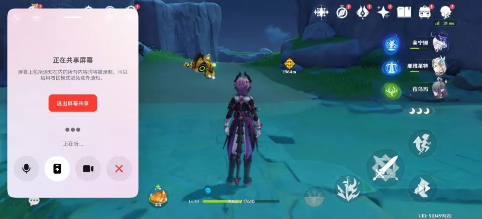 *豆包陪玩原神。通过豆包视频通话中的屏幕共享功能实现,不妨碍游戏操作