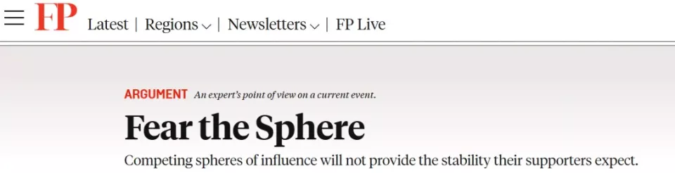 区域霸权通过明确的“势力范围宣称”,来警告其他大国别来染指,从大航海时代西方列强瓜分非洲和美洲,确立各自势力范围,再到冷战时美苏的势力划分