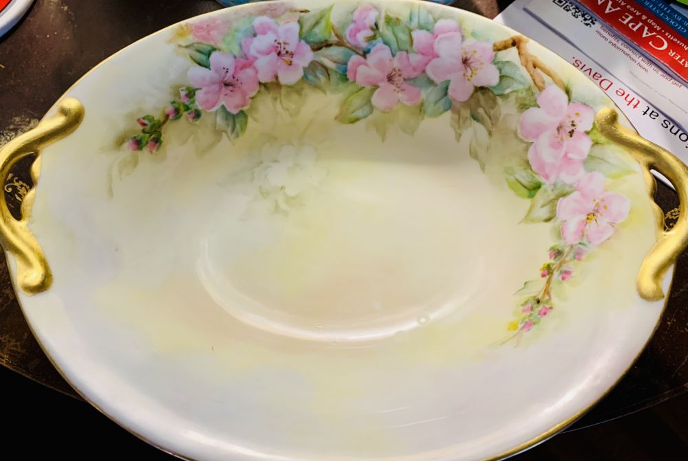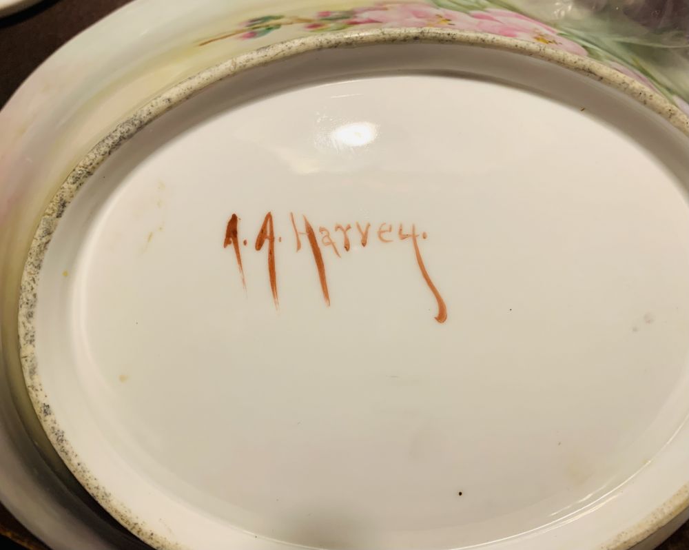 11 背面有签名。看了这位艺术家的签名,知道这水果盘是1850至1920年代之间烧制的。不管它哪年烧的。都很漂亮。老太太指定要把它送给我。估计知道我会善待它。