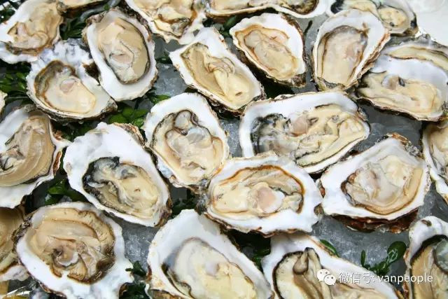 国际知名的太平洋生蚝(Pacific Oyster)的故乡便是沿不列颠哥伦比亚省的海岸和周围的岛屿。由于其水质优异、冰冷,当地的生蚝种类多达20余种,而且每一种口味都无可挑剔。