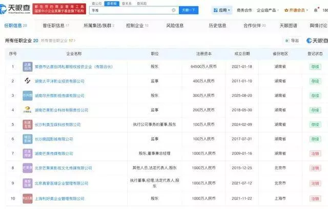 数据显示,李湘关联的20家企业中,有14家已经完成了注销,注销比例高达70%。