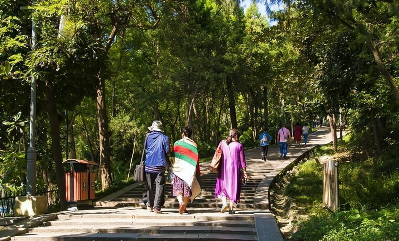 到了景点,为了节省时间,一下车就得开启暴走模式。比如爬山,不是让你悠哉悠哉闲逛,而是在一个小时之内就得完成上下山的一个来回。每天的步数,基本上都是两万步打底。