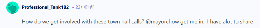 “我们如何参与这些市政厅电话会议?@mayorchow让我参加……我有很多话想说。”