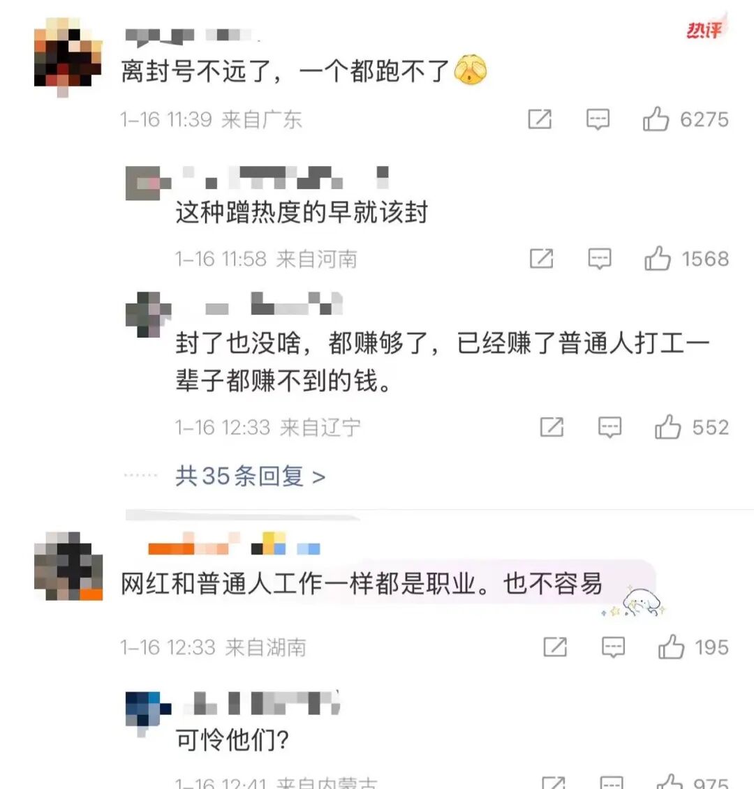对此,网友议论纷纷,“离封号不远了,一个都跑不了”“网红和普通人工作一样都是职业,也不容易”“这种网红再装穷能不能封杀了”。