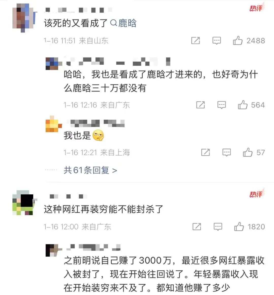 1月16日,#鹿哈自曝经济状况紧张#词条冲上微博热搜。