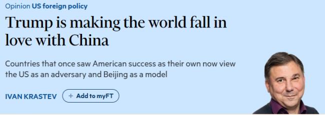 人们也会注意“谁在羡慕谁”。而川普羡慕中国并非秘密,更令他恼火的是,这种羡慕并未得到对等回应。美国总统对中国的工业能力心驰神往,以至于他如今开始模仿“中国式”的国家资本主义。仿佛川普已经对美国自身的政治经济体系失去信心。俗话说,模仿是最高形式的恭维,而现在变成了华盛顿在模仿北京。