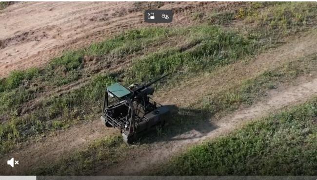 DevDroid TW 12.7,不过是一辆无人地面车辆。其大小不超过一台骑乘式割草机,装备有一挺.50口径M2勃朗宁机枪,由一名士兵远程操作,遥控距离可达25公里。这架在西方盟友帮助下由乌克兰人自己制造的军事机器人,可以通过AI自动导航系统或遥控,以6公里每小时的速度在崎岖的地形上行驶。