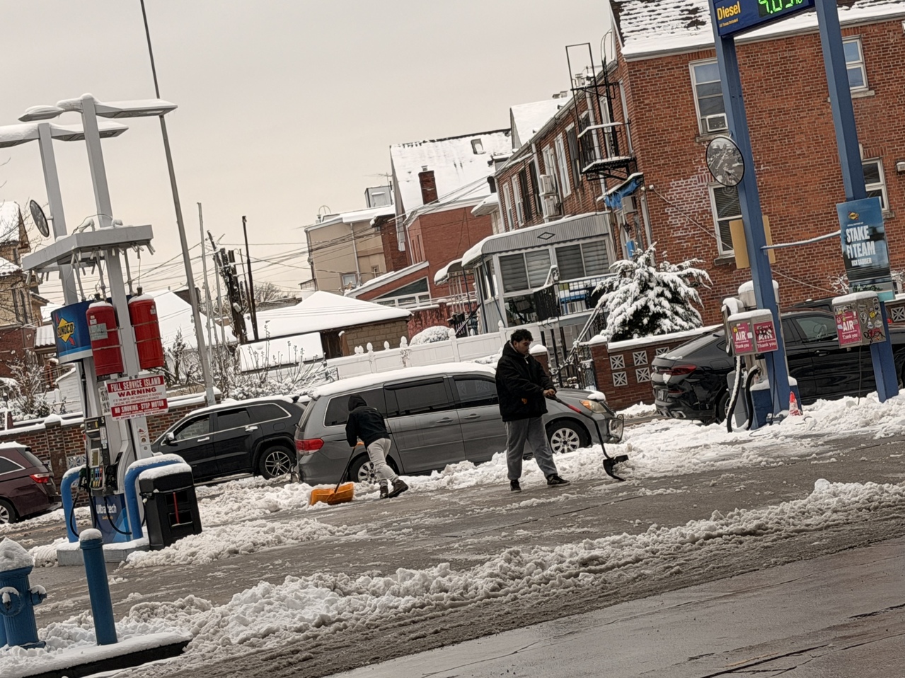 纽约州再迎降雪气候,令许多居民不停挖掘清除积雪的生活妙招。图为民众铲雪画面。(记者马璿╱摄影)