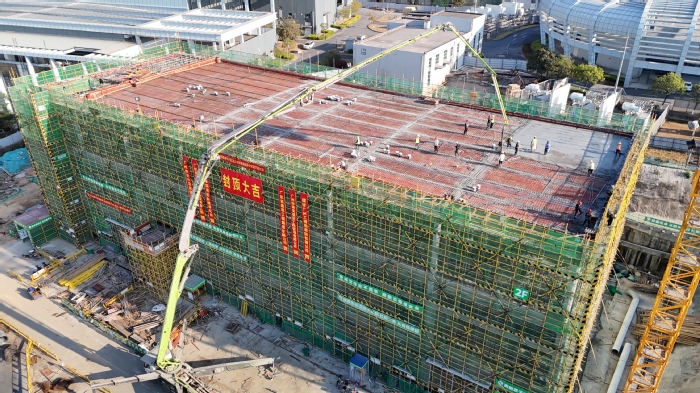 高能质子实验厅屋面楼板浇筑现场。高能所东莞研究部供图,下同