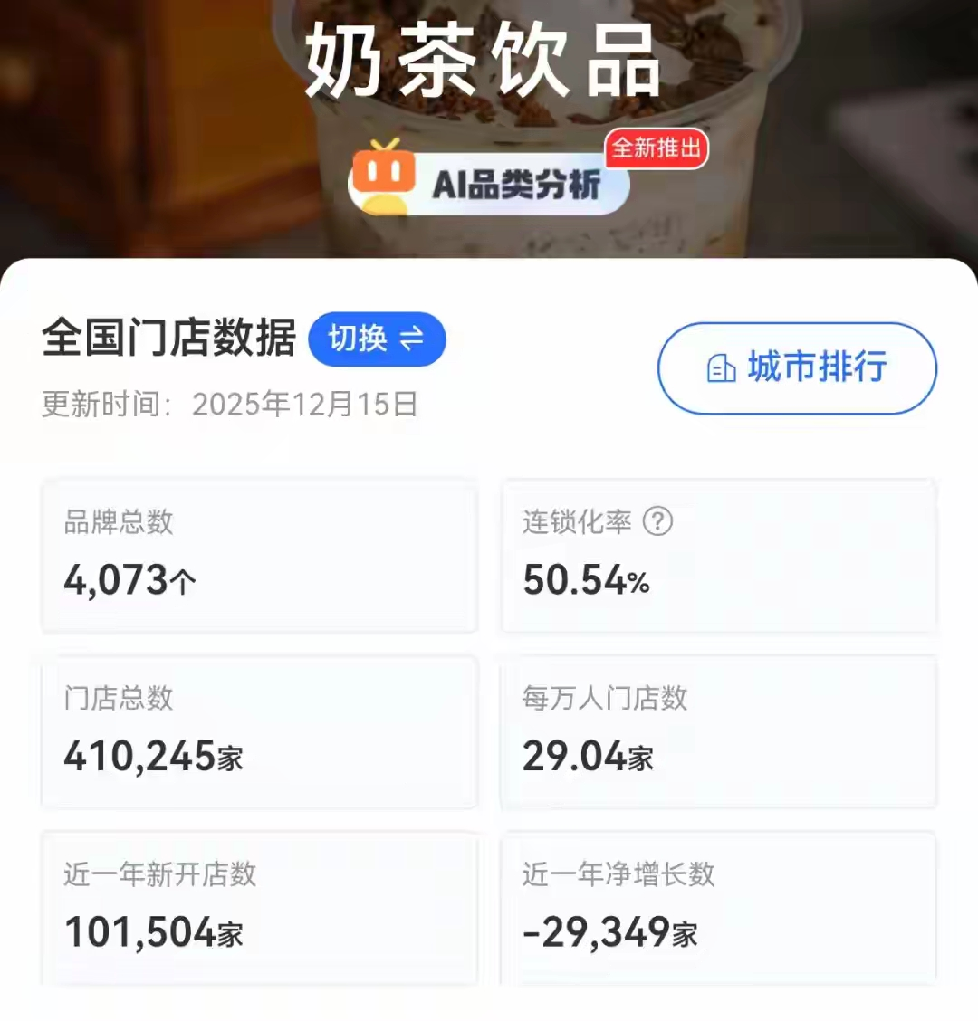 艾媒咨询发布的《2026年新式茶饮产品创新及消费趋势洞察》显示,2025年中国新式茶饮市场规模达3749.3亿元,同比增长5.7%。而在2024年,市场同比增速为6.4%。这也意味着2025年的市场增长动能已明显放缓,截止去年底,全国有超过40万家奶茶店,不过减少也是成了趋势。
