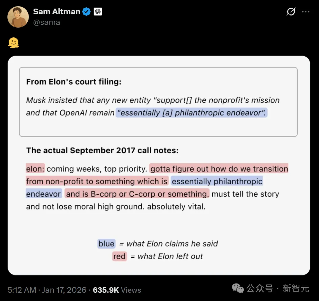 4月27日,马斯克诉OpenAI案即将开庭。OpenAI甩出重磅炸弹:马斯克不仅支持OpenAI转型营利,还索要OpenAI绝对控制权。这场官司表面是非营利vs营利之争,实则是一场关于谁来掌控AGI的终极博弈。