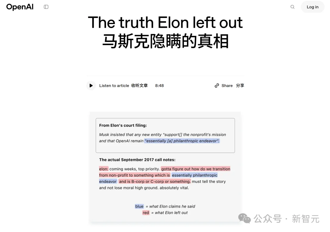 另一边,OpenAI再也坐不住了,直接在其官网上甩出了一篇名为《The truth Elon left out》(埃隆遗漏的真相)的檄文。