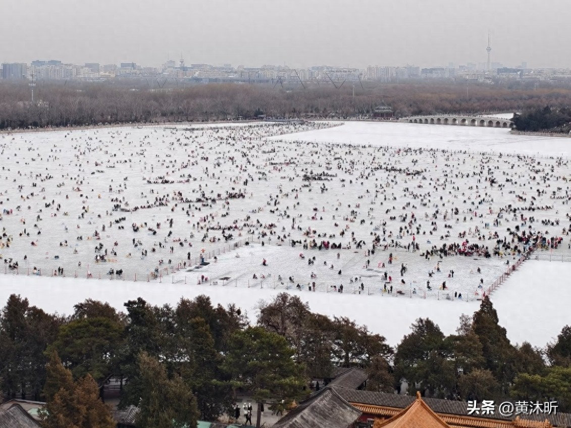 连着颐和园的冰场都开放了,看看这密密麻麻的人,像蚂蚁一样密集。