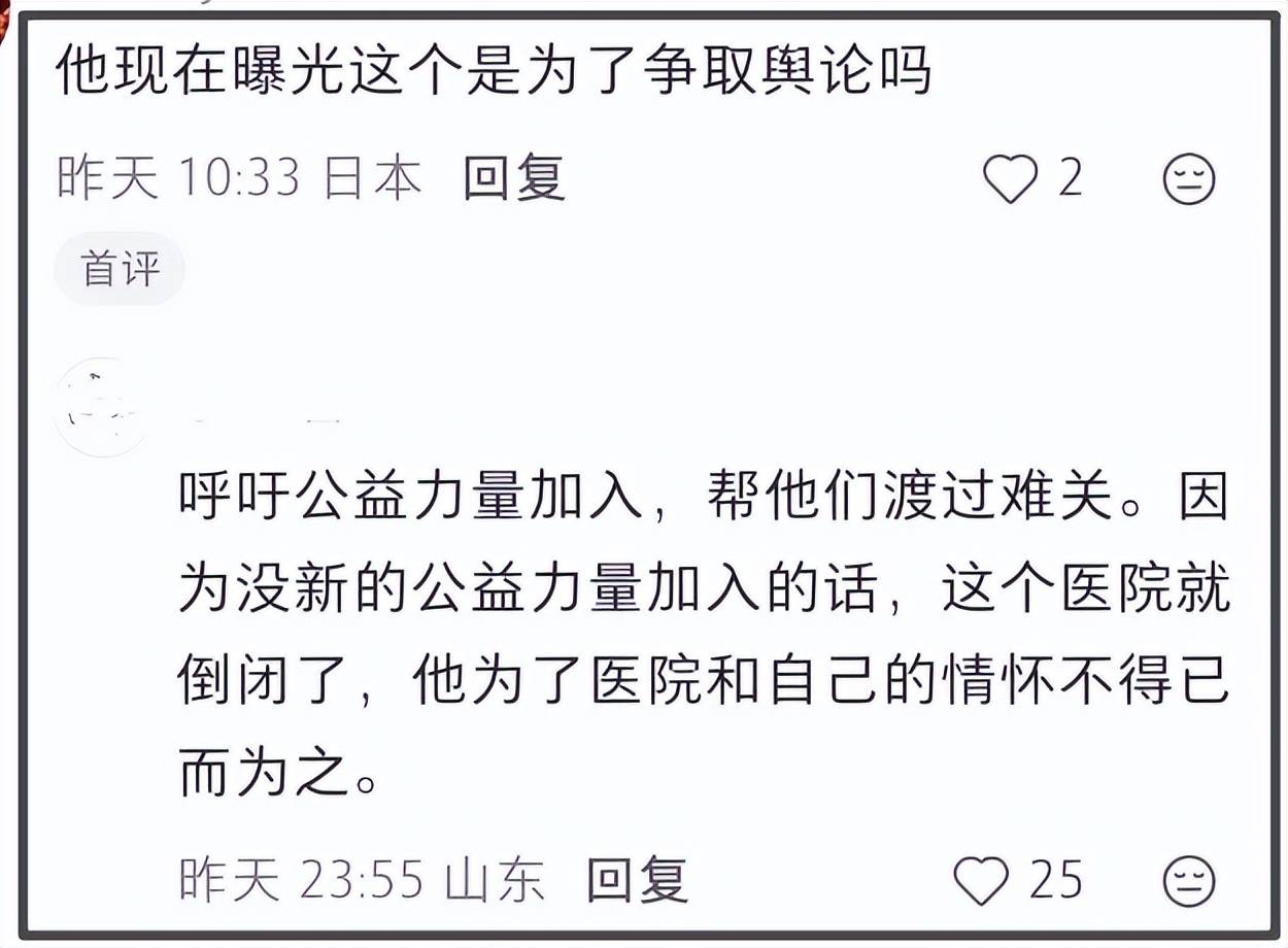 在采访中,他坦诚续签合同是自己的商业失败,也认同网友对他“投资能力差劲”的调侃,也表示法理上要遵循法院的判定,但情理上还是忍不住埋怨“欠的都是涨的租金”。同时,他也透露医院这些年给11000名唇腭裂儿童做过手术,其中7000名是全额免费,4000多名是家长们自己坚持承担。