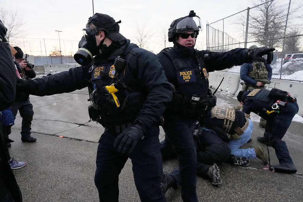 当地时间1月17日,美国明尼阿波利斯,联邦执法人员拘捕抗议者。图源:视觉中国