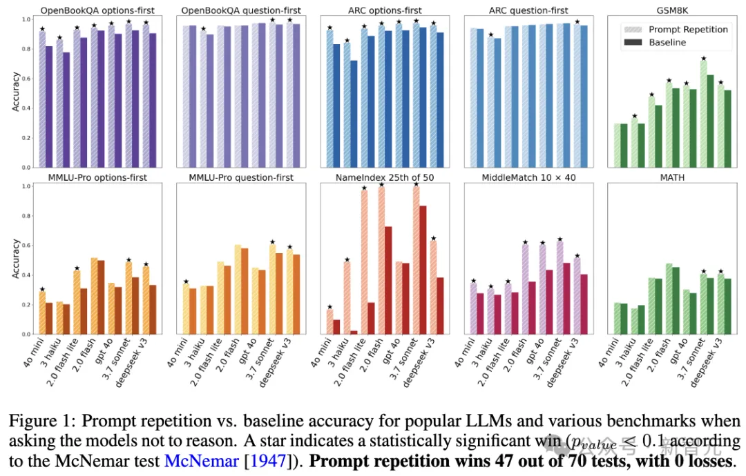 在这篇题为《Prompt Repetition Improves Non-Reasoning LLMs》论文中,研究人员用数据告诉我们: