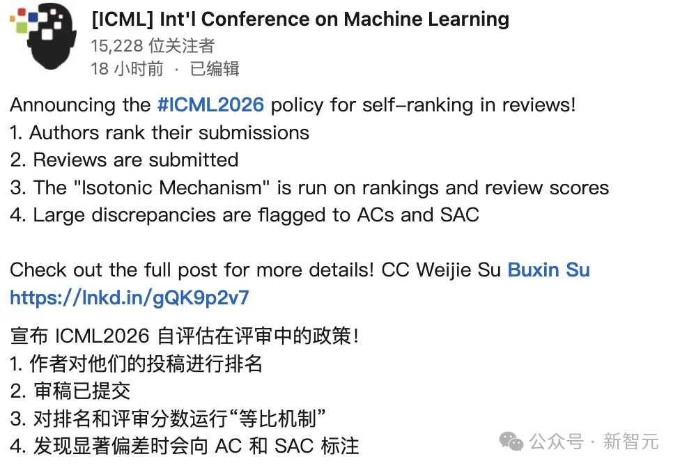 面对这场审稿危机,ICML 2026终于坐不住了。他们推出了一项极具颠覆性、甚至带有博弈论色彩的新政——作者自评级。