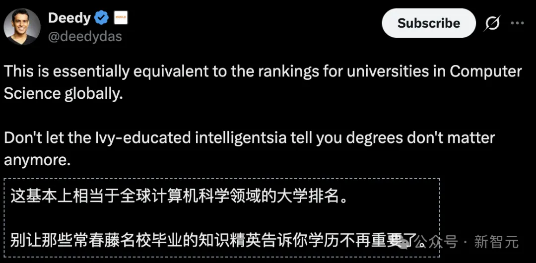 科技投资人Deedy精准地概括了这份名单的特点:「本质上,这就是全球计算机科学的大学排名。」