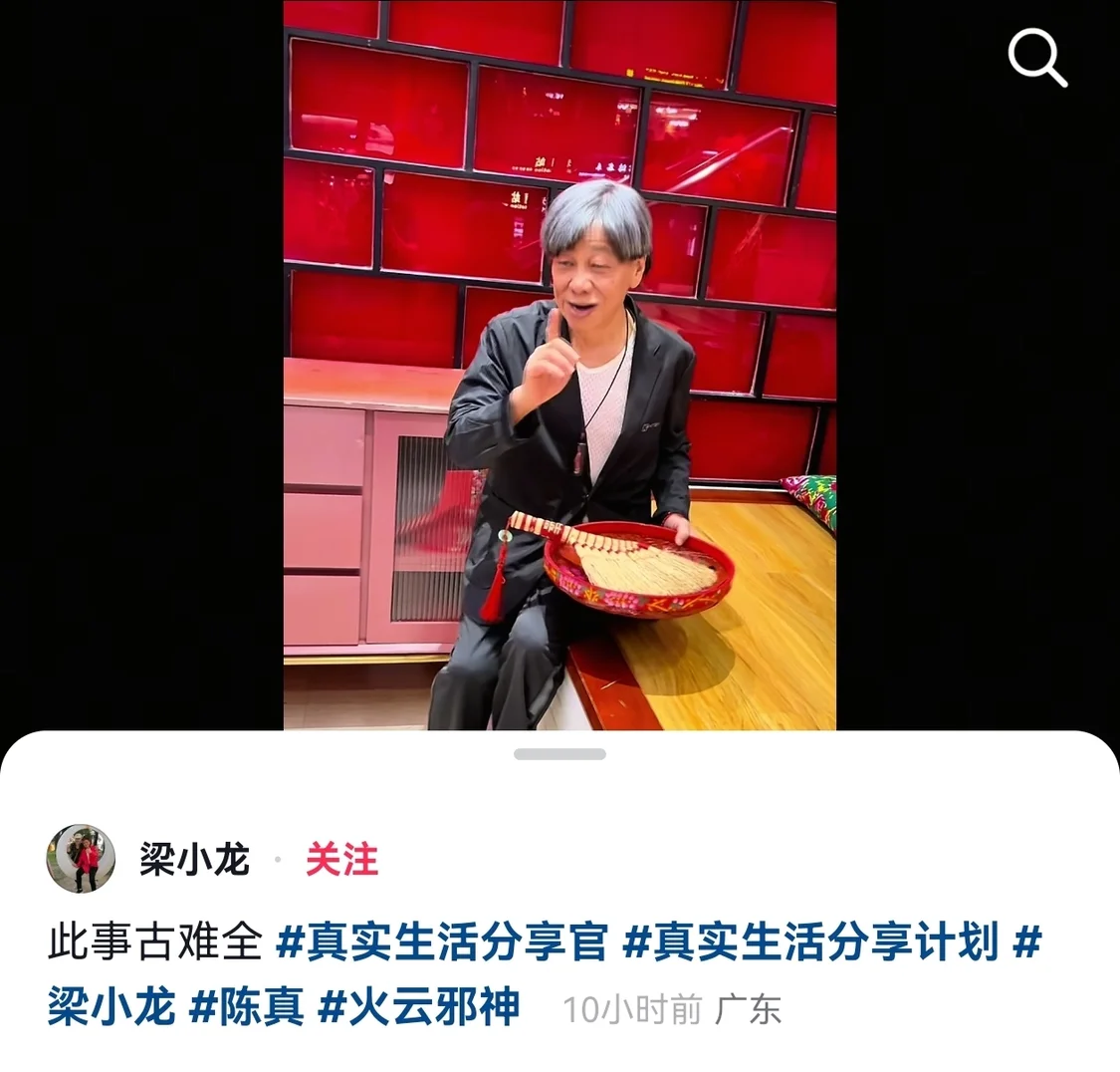 查询梁小龙个人社交媒体账号发现,他最近一天更新了22条视频,本人均有出镜。他的最新一条视频发布于10小时前,配文为“此事古难全。”