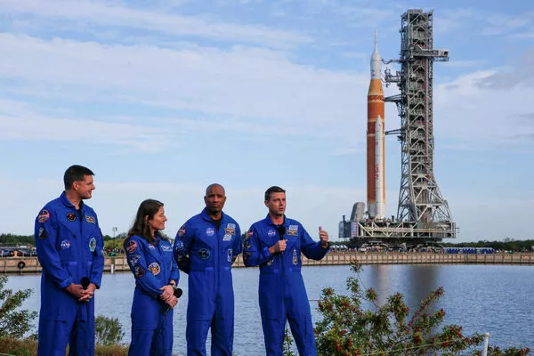 BBC、卫报等报导,这支高达98公尺的巨型火箭由大型履带运输车载运,以时速约1.3公里缓缓从组装大楼出发,历经近12小时、约6.5公里的长征,顺利抵达甘迺迪太空中心的39B发射台。本次任务成员包括NASA资深太空人魏斯曼(Reid Wiseman)、葛洛佛(Victor Glover)、柯克(Christina Koch)以及加拿大籍的韩森(Jeremy Hansen)。
