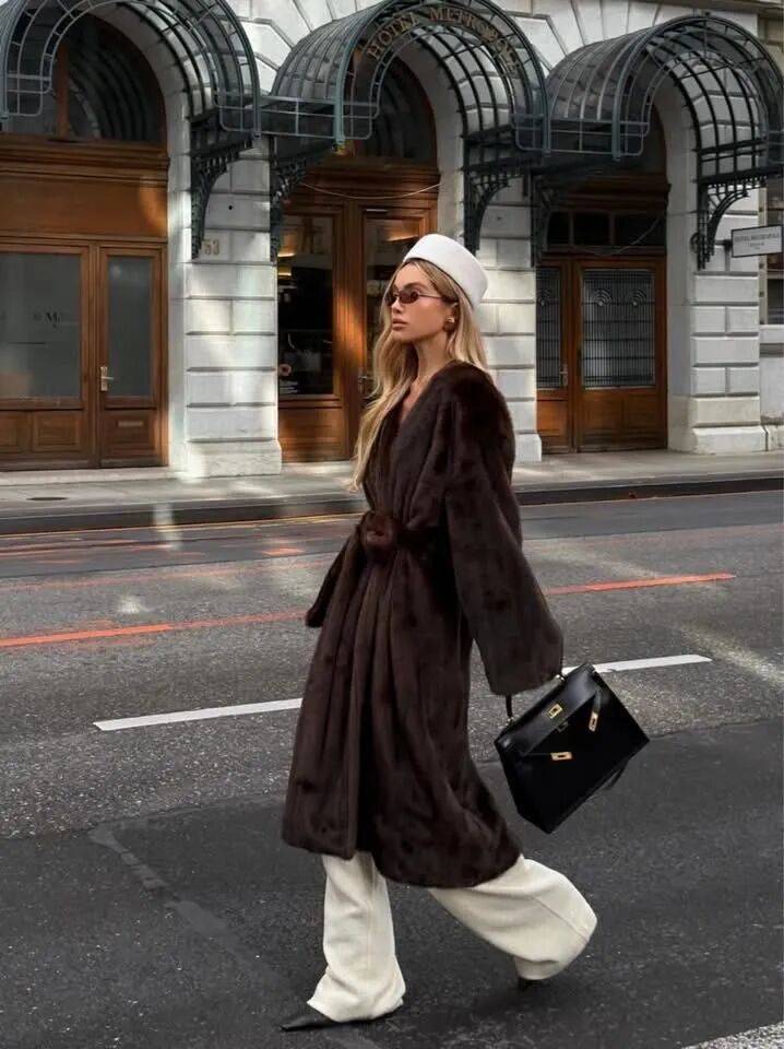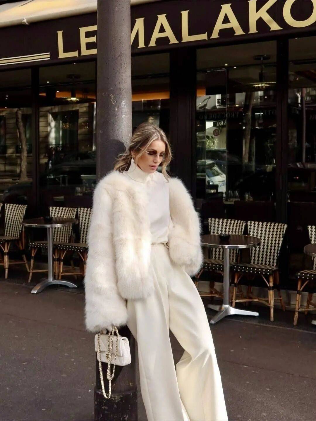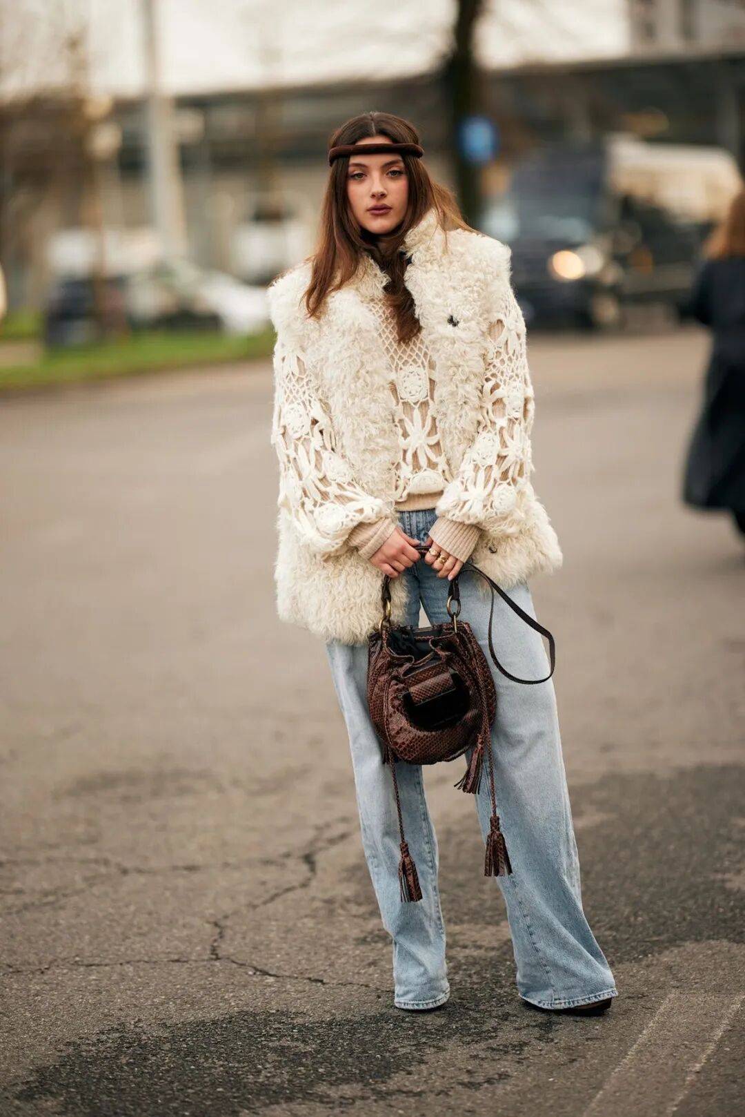 选择羊毛或环保皮草材质,以柔和的珍珠白、燕麦色替代深重色彩,或是万能的棕色,便能摆脱厚重感,只留温润蓬松的矜贵。
