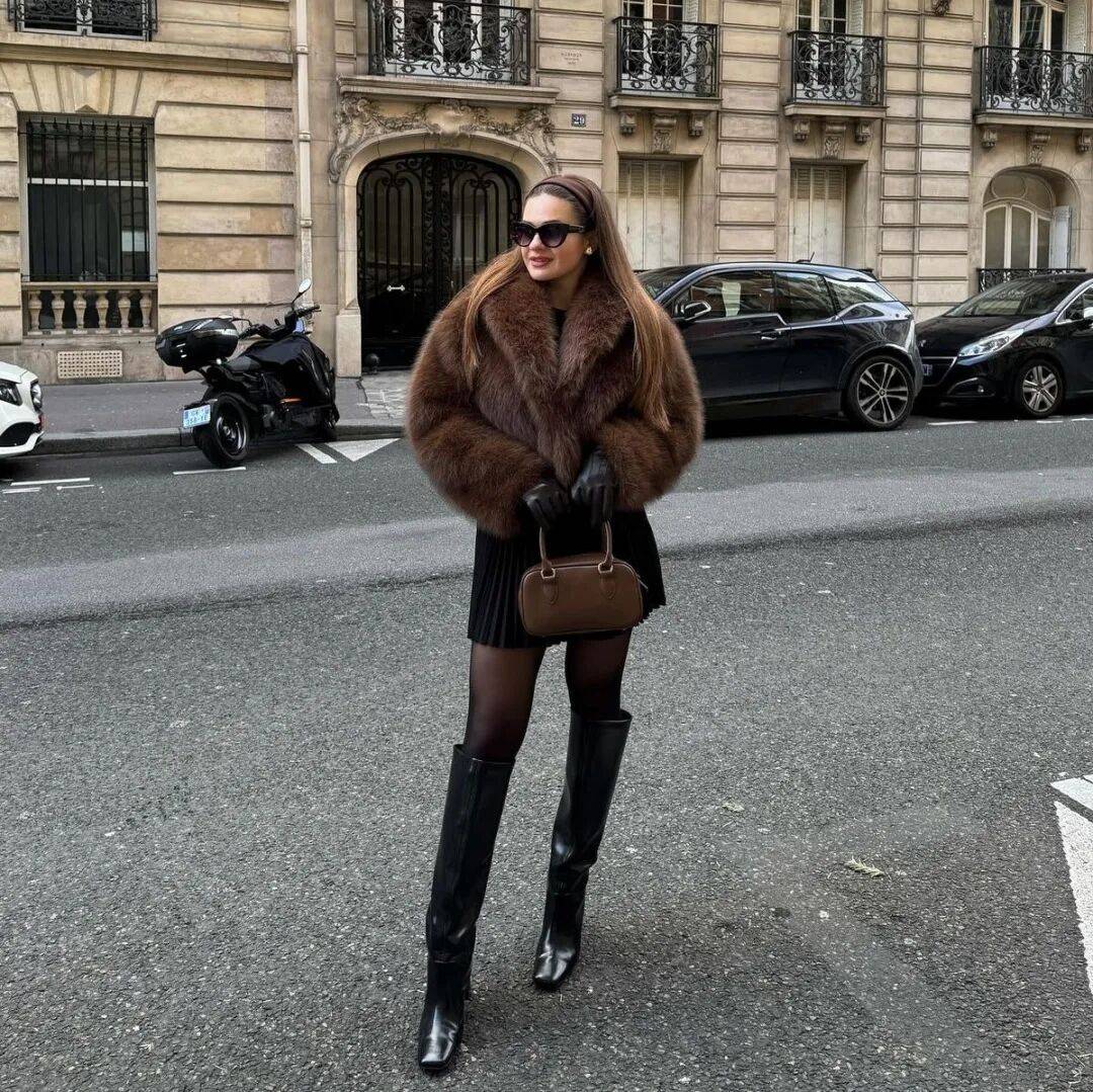 一件剪裁合宜的短款皮草外套是此风格的核心。