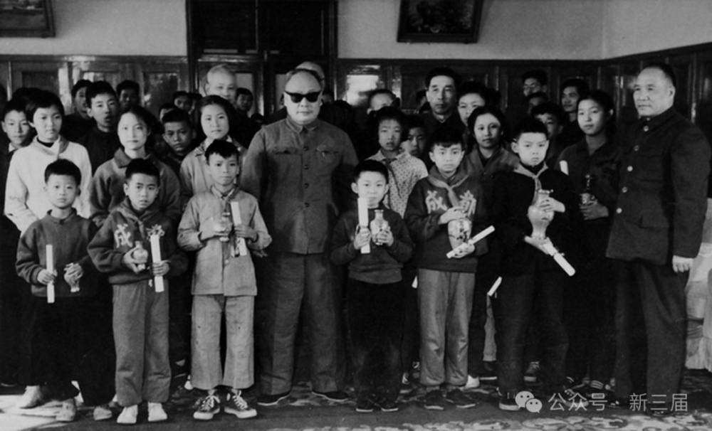 1962年10月北京,首届六城市少年儿童围棋比赛,陈毅与小棋手合影,聂卫平也在其中