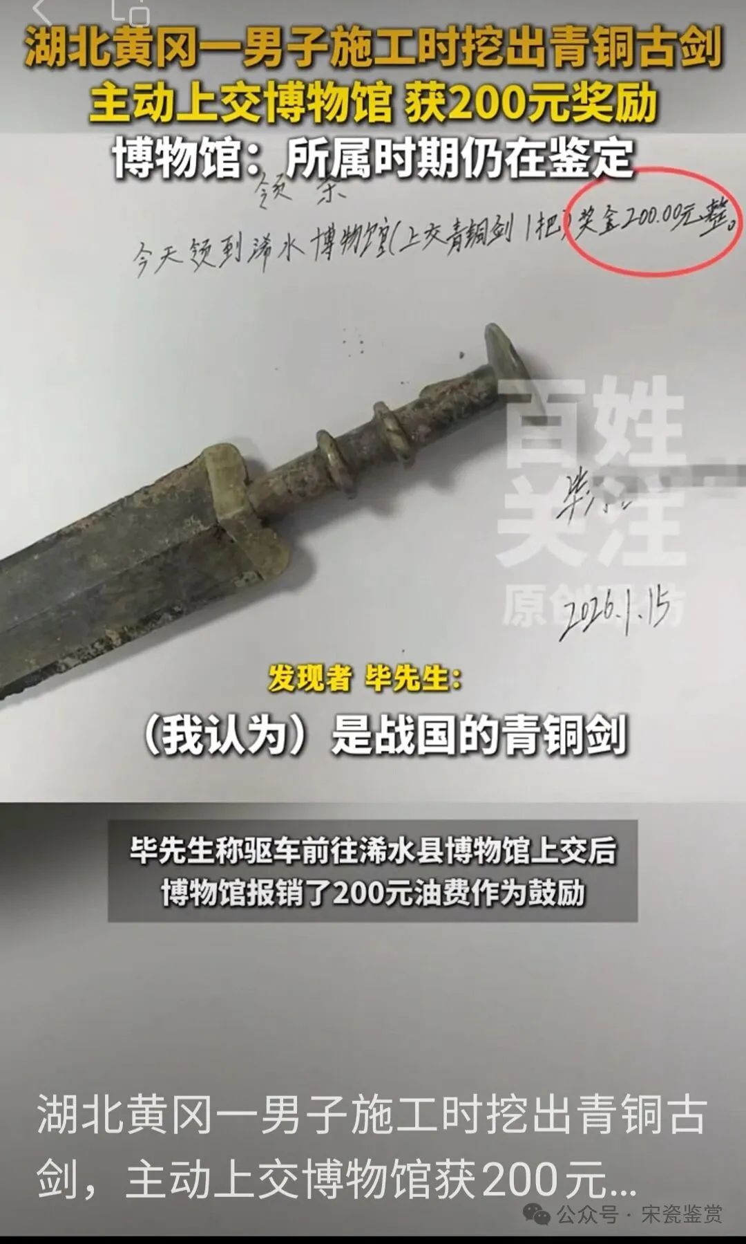 男子工地挖到青铜剑:奖励200,您捐不捐?宋瓷鉴赏