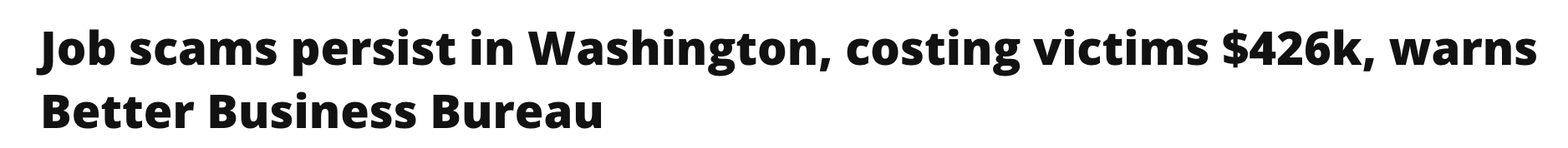 据1月16日报道,近日,美国商业改进局 (BBB)发布最新警示:华州的就业诈骗案件持续攀升,过去一年已造成受害者累计经济损失超过426,000美元。数据显示,BBB共接到近600起与虚假工作机会相关的投诉,受害者遍布全州。