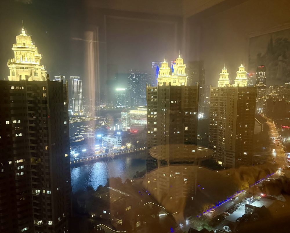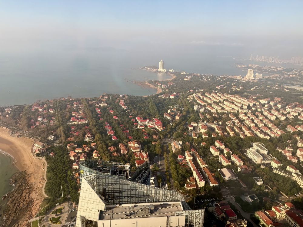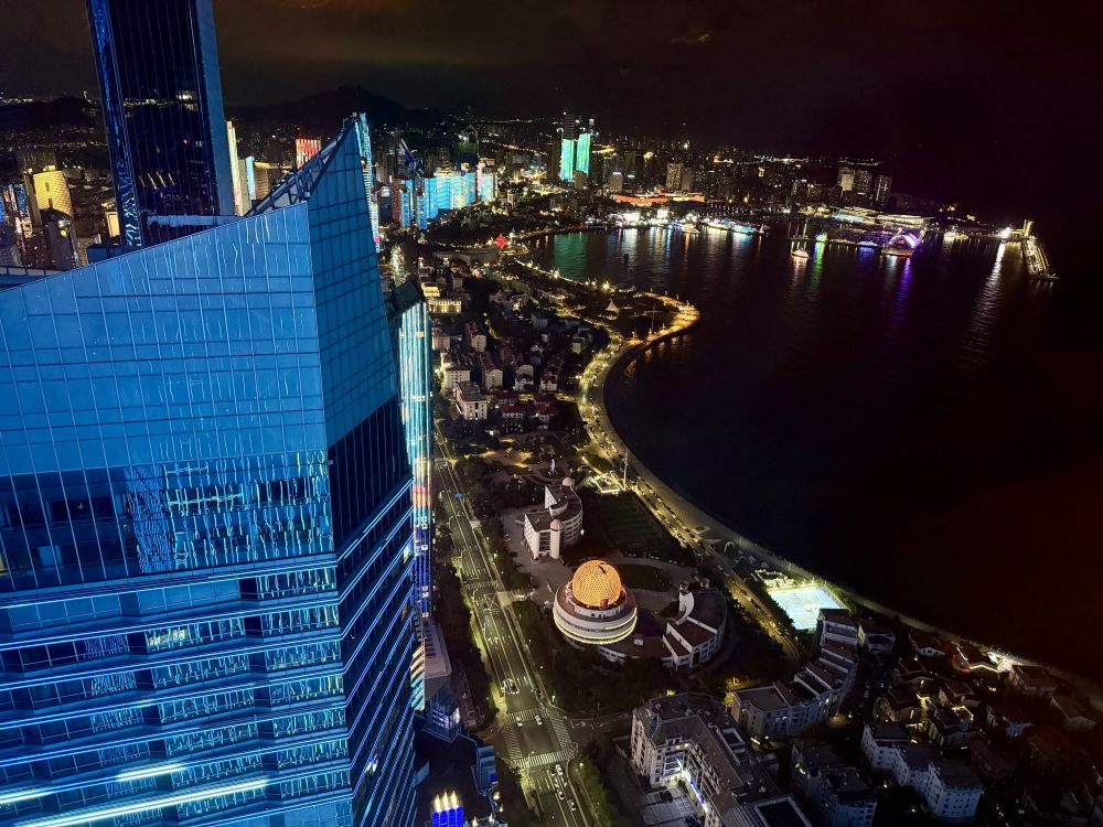 第一站青岛,就住在海边的瑞吉酒店。晚上的灯光秀很壮观,比美上海和香港的夜景