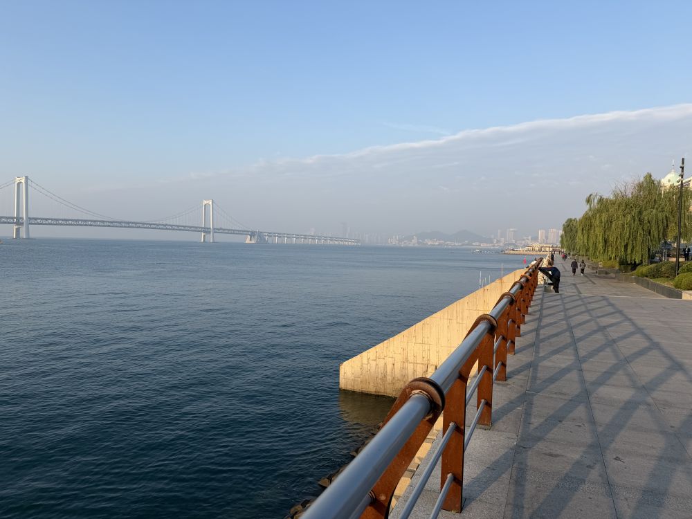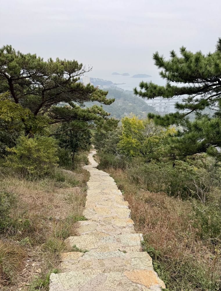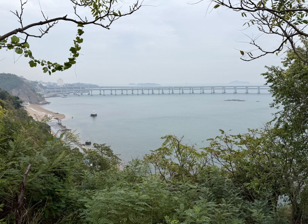 大连的莲花山,小雨中我从酒店沿着海滨山路爬上了山顶。云雾中时现跨海大桥