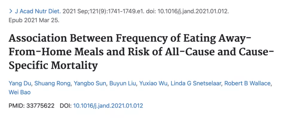 与很少在外就餐的人相比,每天 ≥ 2 顿在外就餐的人,全因死亡率增加 49%。