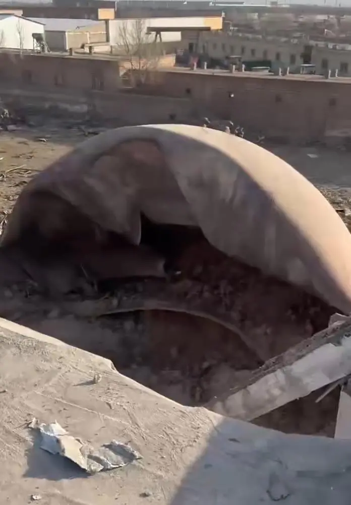 上述崔某告诉记者,经他了解,砸塌李先生宾馆隔壁民房的大铁罐是爆炸后飞过来的一个东西。他暂不清楚这是什么设备,“直径有六七米,把地面砸出了坑。”此处民房是外来户盖的,没有人居住。事发后,现场已封锁并安排人员值守,等待相关部门调查处理。