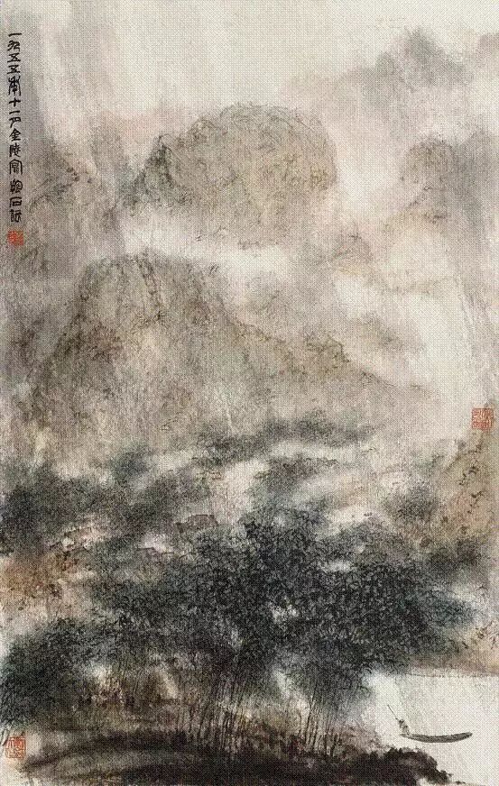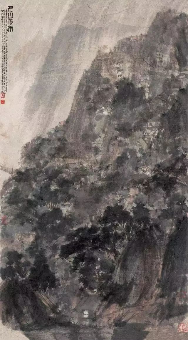 傅抱石是写雨景的大师,有“傅氏风雨下钟山”、“一半山川带雨痕”的美称。