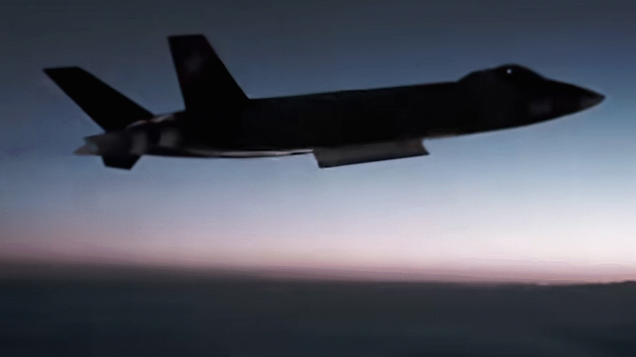 更符合事实的结论是,这枚无弹翼的“光杆弹”,实为用于检验机腹内埋弹舱开启与弹射功能的测试弹,其尺寸与霹雳-15相近。值得注意的是,画面后半段导弹点火命中目标的场景,其实是后期编辑添加的CG特效,并非真实发射场景。