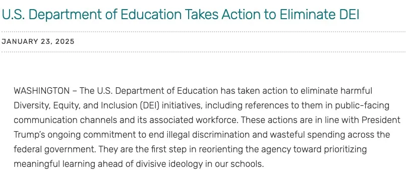 去年,特朗普总统上任后宣布将终结多元化、公平和包容项目(DEI),对涉嫌种族歧视的逾50所大学展开调查。