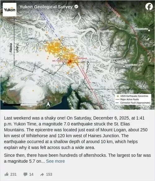 时间回到去年 12 月 6 日中午,阿拉斯加与育空交界处发生 7.0 级强震。