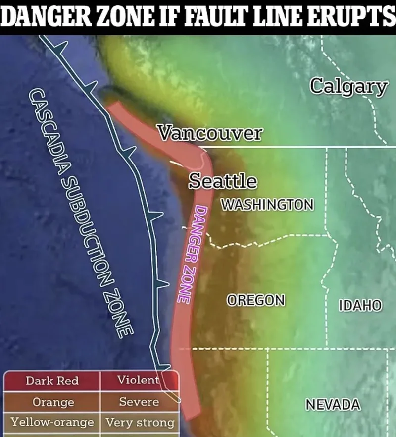 这条超级断层从温哥华岛一路向南,贯穿华盛顿、俄勒冈,直达加州北部,全长近 700 英里。