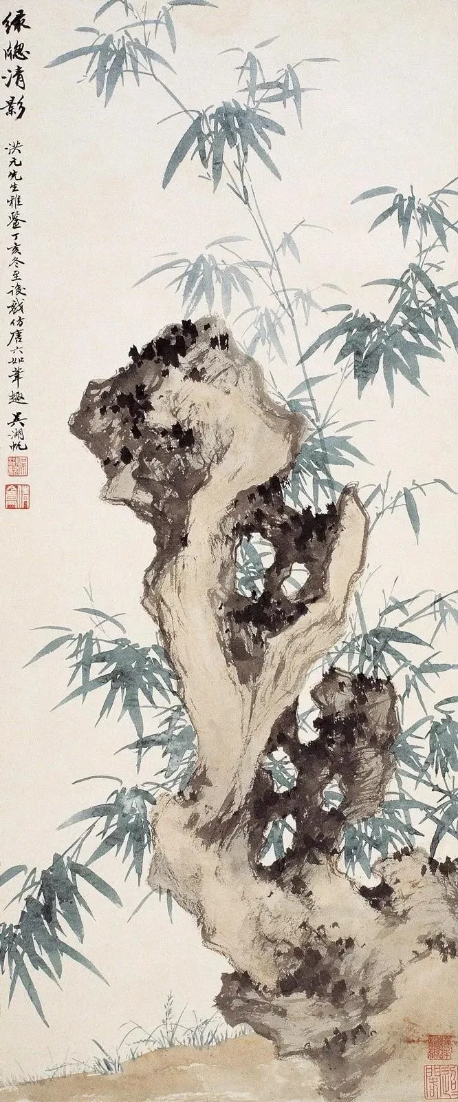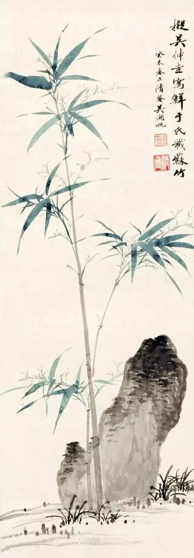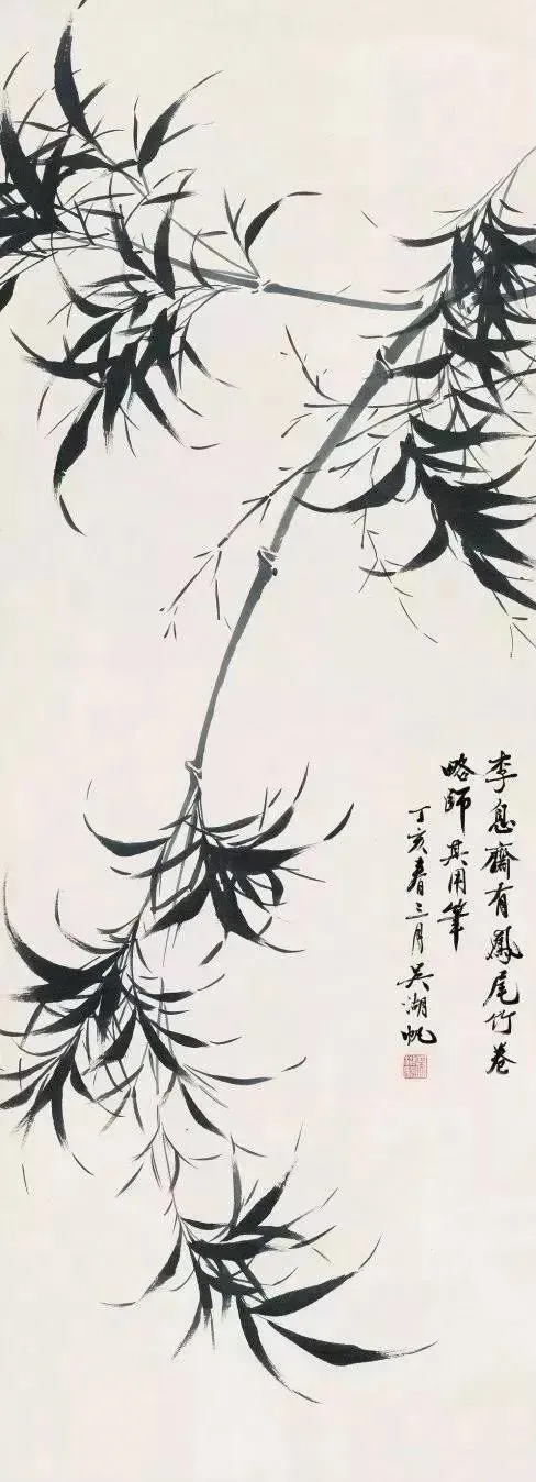 吴湖帆写竹,苍翠华滋 吴湖帆(1894—1968) 有近世画竹第一人之誉,他画竹从宋人双钩入手,又参以赵雍墨竹及恽寿平的没骨法。其笔下的竹子有疏淡清雅之韵味, 于刚健婀娜之中,流露出爽朗高洁的情趣,追求诗情词境,作品潇洒生动、苍翠华滋。